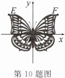 10. 剪纸艺术是中国民间艺术之一,很多剪纸作品体现了数学中的对称美.如图,蝴蝶剪纸是一幅轴对称图形,将其放在平面直角坐标系中,如果图中点E的坐标为$(2m,-n)$,其关于y轴对称的点F的坐标为$(3-n,-m+1)$,那么$m-n$的值为(