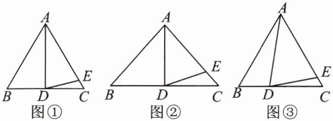 (1) 如图①,若$\angle BAD = 30^{\circ}$,$AD是BC$边上的高,$AD = AE$,则$\angle EDC$的度数为