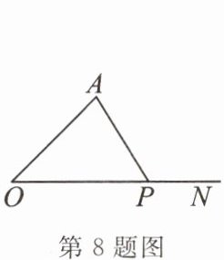 8. 如图,点$P是射线ON$上一动点(即$P可在射线ON$上运动),$\angle AON = 45^{\circ}$。当$\angle A = $