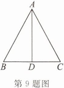 9. 如图,下列条件不能推出$\triangle ABC$是等腰三角形的是(