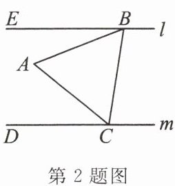 2. (德阳市中考改编)如图,直线l//m,等边三角形ABC的两个顶点B,C分别落在直线l,m上,若∠ABE= 21°,则∠ACD的度数是(