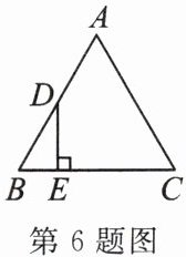 6. 如图,在 $ \triangle ABC $ 中, $ \angle B = \angle C = 60^{\circ} $,点 $ D $ 为 $ AB $ 边的中点, $ DE \perp BC $,若 $ BE = 1 $,则 $ AC $ 的长为(
