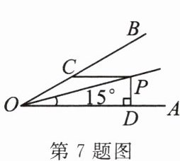 7. 如图, $ OP $ 平分 $ \angle AOB $, $ \angle AOP = 15^{\circ} $, $ PC // OA $, $ PD \perp OA $ 于点 $ D $. 若 $ PC = 4 $,则线段 $ PD $ 的长为