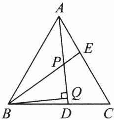 9. 如图, $ \triangle ABC $ 为等边三角形, $ AE = CD $, $ AD $, $ BE $ 相交于点 $ P $, $ BQ \perp AD $ 于点 $ Q $, $ PQ = 3 $, $ PE = 1.5 $.
