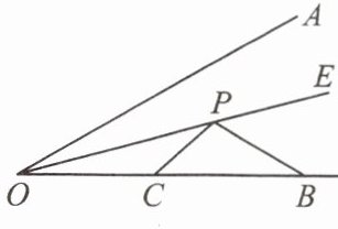 12. 【原创题】如图,$ OE $ 为 $ \angle AOB $ 的平分线,$ \angle AOB = 30^{\circ} $,$ OB = 6 $,点 $ P $,$ C $ 分别为射线 $ OE $,$ OB $ 上的动点,求 $ PC + PB $ 的最小值。