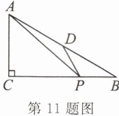 11. (随州市期末)如图,在 $ Rt \triangle ABC $ 中,$ \angle C = 90^{\circ} $,$ \angle B = 30^{\circ} $,$ BC = 8 $,$ D $ 为 $ AB $ 的中点,$ P $ 为 $ BC $ 上一动点,连接 $ AP $,$ DP $,则 $ AP + DP $ 的最小值是