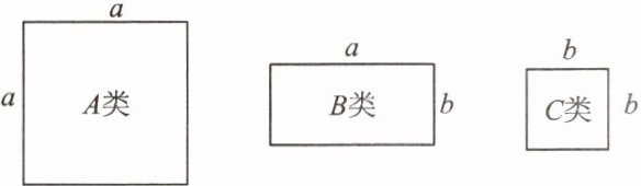 12. 【数形结合法】用如图所示的正方形和长方形卡片若干张拼成一个长为$2a + b$、宽为$a + 3b$的长方形,需要$A$类卡片