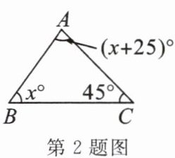 2.(教材第16页习题第1题变式)在$\triangle ABC$中,三个内角的度数如图所示,则$\angle B$的度数为(