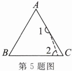 5. 在$\triangle ABC$中,$\angle C = 60^{\circ}$,按图中虚线将$\angle C$剪去后,$\angle 1 + \angle 2 = $