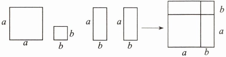 11. 【新考法】利用1个边长为 $ a $ 的正方形,1个边长为 $ b $ 的正方形和2个长为 $ a $、宽为 $ b $ 的长方形可拼成一个大正方形(如图所示),从而可得到因式分解的公式为