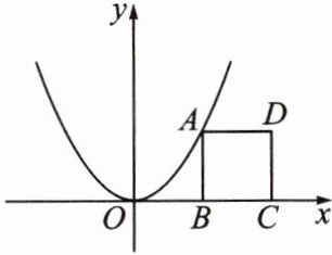 14. 如图,正方形 $ ABCD $ 的顶点 $ A $ 在抛物线 $ y = x^2 $ 上,顶点 $ B $,$ C $ 在 $ x $ 轴的正半轴上,且点 $ B $ 的坐标为 $ (1, 0) $。