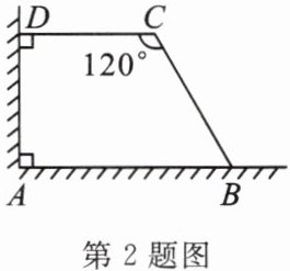 2. 如图,利用一个直角墙角修建一个梯形储料场 ABCD,其中 $ ∠C = 120^{\circ} $。若新建墙 BC 与 CD 总长为 12m,则该梯形储料场 ABCD 的最大面积是(