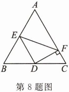 8. 如图,D 是边长为 4 的等边三角形 ABC 的边 BC 上一点,$ ED // AC $ 交 AB 于点 E,$ DF ⊥ AC $ 交 AC 于点 F,$ △EDF $ 的面积最大是(