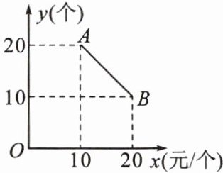 2. (聊城市中考) 某食品零售店新上架一款冷饮产品,每个成本为 8 元,在销售过程中,每天的销售量 $ y $ (个) 与销售价格 $ x $ (元/个) 的关系如图所示,当 $ 10 \leq x \leq 20 $ 时,其图象是线段 $ AB $,则该食品零售店每天销售这款冷饮产品的最大利润为