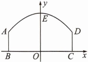 7. 一隧道的横截面是由一段抛物线及矩形的三边围成的,隧道宽$BC = 10m$,矩形部分高$AB = 3m$,抛物线的最高点E离地面$OE = 6m$,如图所示,以直线BC为x轴,直线OE为y轴建立平面直角坐标系。