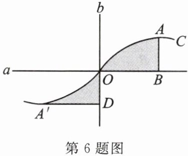 6. 如图,直线 a、b 垂直相交于点 O,曲线 C 关于点 O 成中心对称,点 A 的对称点是点 A',AB⊥a 于点 B,A'D⊥b 于点 D.若 OB = 3,OD = 2,则阴影部分的面积之和为