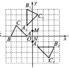 (2)作出△ABC关于N(0,-1)的中心对称图形$△A_2B_2C_2,$并直接写出$C_2$的坐标;