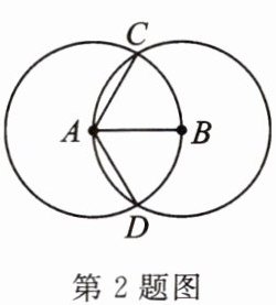 2. 如图,分别以 $ A $,$ B $ 为圆心,线段 $ AB $ 的长为半径的两个圆相交于 $ C $,$ D $ 两点,则 $ \angle CAD $ 的度数为