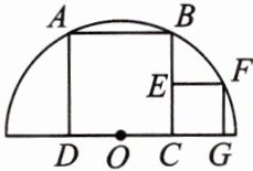 12. (核心素养·几何直观)如图,正方形 $ ABCD $ 在半圆 $ O $ 内部,顶点 $ A $,$ B $ 在圆上,$ C $,$ D $ 在直径上。