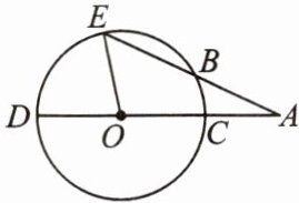 10. 如图,已知 $ CD $ 是 $ \odot O $ 的直径,$ \angle DOE = 78^{\circ} $,$ AE $ 交 $ \odot O $ 于点 $ B $,且 $ AB = OC $,求 $ \angle A $ 的度数。