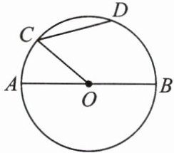 7. 如图, $ AB $ 是 $ \odot O $ 的直径,点 $ C $ 在 $ \odot O $ 上, $ \angle AOC = 40^{\circ} $, $ D $ 是 $ \overset{\frown}{BC} $ 的中点,求 $ \angle OCD $ 的度数.