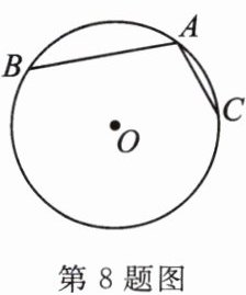 8. 如图,若 $ \overset{\frown}{AB} $ 和 $ \overset{\frown}{AC} $ 是同圆的两条弧,且 $ \overset{\frown}{AB} = 2 \overset{\frown}{AC} $,那么弦 $ AB $ 与 $ 2AC $ 的大小关系是 (