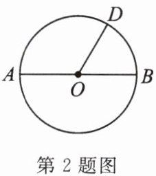 2. 如图,已知 $ AB $ 为 $ \odot O $ 的直径,点 $ D $ 为半圆周上的一点,且 $ \overset{\frown}{AD} $ 所对圆心角的度数是 $ \overset{\frown}{BD} $ 所对圆心角度数的 $ 2 $ 倍,则圆心角 $ \angle BOD = $
