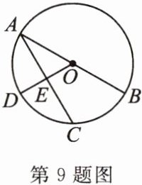 9. 如图, $ AB $ 是 $ \odot O $ 的直径, $ \angle BOD = 120^{\circ} $,点 $ C $ 为弧 $ BD $ 的中点, $ AC $ 交 $ OD $ 于点 $ E $, $ DE = 1 $,则 $ AE $ 的长为 (