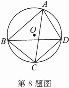 8. 如图,四边形 $ABCD$ 内接于$\odot O$,$AC$ 平分$\angle BAD$。若$\angle BDC = 40^{\circ}$,则$\angle BCD$的度数为