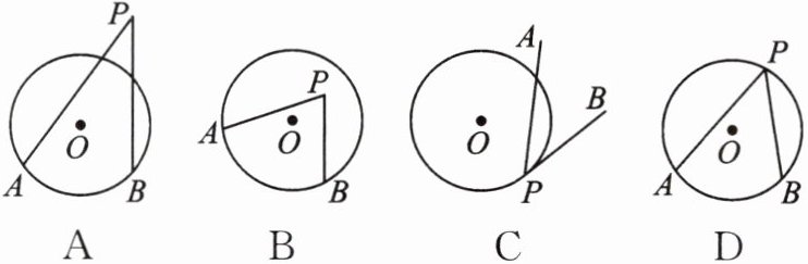 1. 下列选项中,$\angle APB$是圆周角的是 (