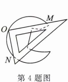 4. (教材第 89 页第 6 题变式)如图,把直角三角尺的直角顶点 $O$ 放在破损玻璃镜的圆周上,两直角边与圆弧分别交于点 $M$,$N$,量得 $OM = 8\mathrm{cm}$,$ON = 6\mathrm{cm}$,则该圆形玻璃镜的半径是