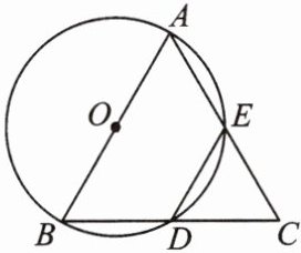 14. 如图,$AB$ 是$\odot O$的直径,点 $D$,$E$ 在$\odot O$上,$AE$,$BD$ 的延长线交于点 $C$,且 $AB = AC$。求证:$BD = DE$。