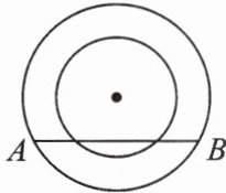 8. 如图,两个同心圆,大圆半径为5cm,小圆的半径为3cm,若大圆的弦$AB$与小圆相交,则弦$AB$的取值范围是