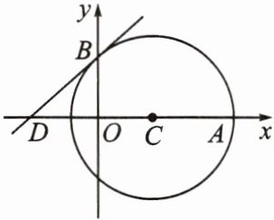 6. 如图,在平面直角坐标系中,以点$C(2,0)$为圆心,以$3为半径的圆分别交x轴正半轴于点A$,交$y轴正半轴于点B$,过点$B的直线交x轴负半轴于点D(-\frac{5}{2},0)$。