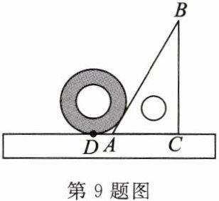 9. (新考法)把直尺、三角尺和圆形螺母按如图所示放置于桌面上,∠CAB= 60°,若量出AD= 6cm,则圆形螺母的外直径是(