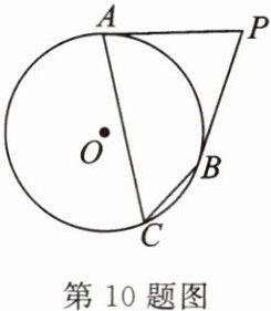 10. (原创题)如图,PA,PB是⊙O的两条切线,A,B为切点,点C在⊙O上,且∠ACB= 55°,则∠APB等于(