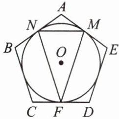 9. 如图所示,⊙O是正五边形ABCDE的内切圆,点M,N,F分别是边AE,AB,CD与⊙O的切点,则∠MFN的度数为(