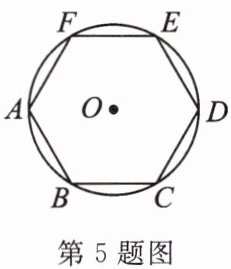 5. 如图,正六边形ABCDEF内接于⊙O,若⊙O的周长等于8π,则正六边形的边长为(