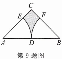 9. 如图,在$Rt\triangle ABC$中,$\angle C = 90^{\circ}$,$AC = BC = 2cm$,点$D是AB$的中点,以$A$,$B$为圆心,$AD$,$BD$长为半径画弧,分别交$AC$,$BC于点E$,$F$,则图中阴影部分的面积为