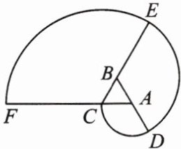 5. (新考法)如图,$\triangle ABC$是正三角形,曲线$CDEF$叫做正三角形的渐开线,其中弧$CD$,弧$DE$,弧$EF的圆心依次是A$,$B$,$C$,如果$AB = 1$,求曲线$CDEF$的长.