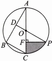 16. (核心素养·运算能力)如图,已知$\odot O是\triangle ABC$的外接圆,$AC$是直径,$\angle A = 30^{\circ}$,$BC = 2$,点$D是AB$的中点,连接$DO并延长交\odot O于点P$,过点$P作PF\perp AC于点F$.