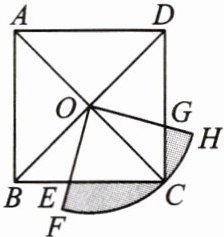 13. 如图,边长为$4cm的正方形ABCD的对角线交于点O$,以$OC为半径的扇形的圆心角\angle FOH = 90^{\circ}$. 则图中阴影部分面积是______$cm^{2}$.
