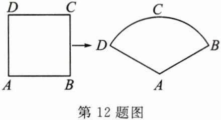 12. (原创题)如图,某数学兴趣小组将边长为3的正方形铁丝框$ABCD$变形为以A为圆心,$AB$长为半径的扇形(忽略铁丝的粗细),则所得的扇形$ADB$的面积为(