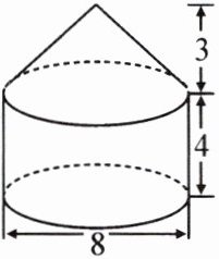 解:圆锥的母线长是:$\sqrt{3^{2}+4^{2}}=5$,圆锥的侧面积是:$\frac{1}{2}×8\pi×5=20\pi$,圆柱的侧面积是:$8\pi×4=32\pi$,几何体的下底面面积是$\pi×4^{2}=16\pi$,所以该几何体的全面积为:$20\pi+32\pi+16\pi=68\pi$.
