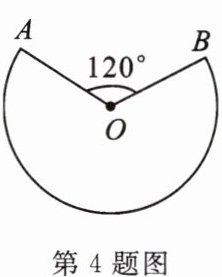 4. 如图,在扇形OAB中,半径OA与OB的夹角为$120^{\circ}$,点A与点B的距离为$2\sqrt{3}$,若扇形OAB恰好是一个圆锥的侧面展开图,则该圆锥的底面半径为