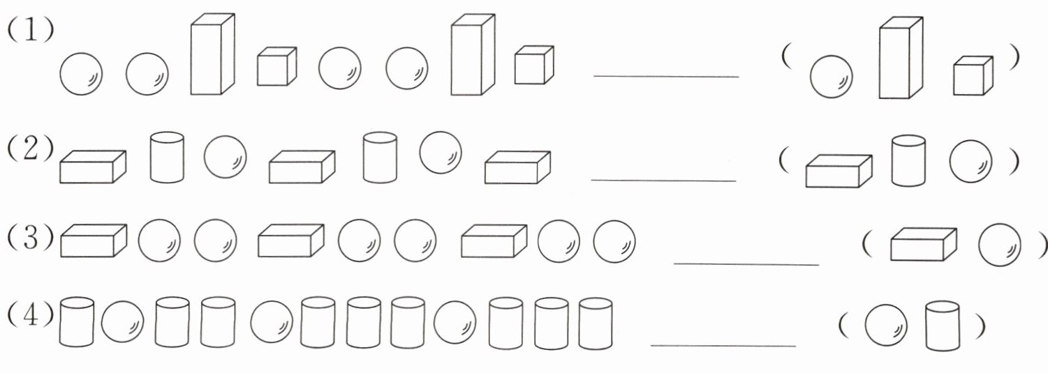 )(2) 先摆一个圆柱,在圆柱的右边摆一个正方体,再把长方体摆在圆柱的上面。