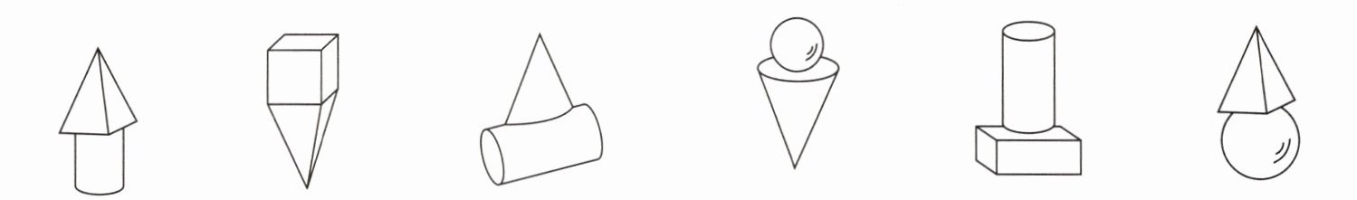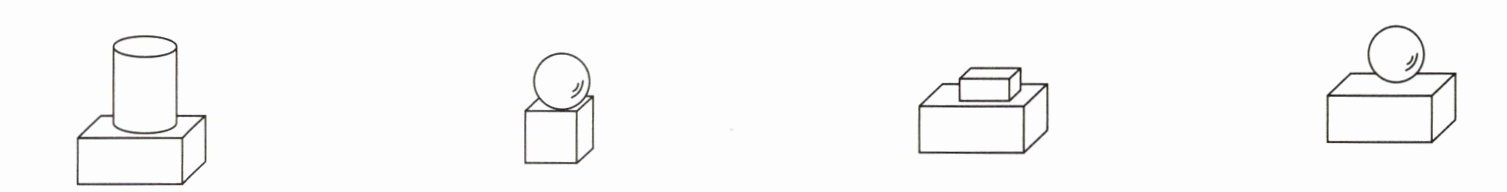 (2) 先摆一个圆柱,在圆柱的右边摆一个正方体,再把长方体摆在圆柱的上面。