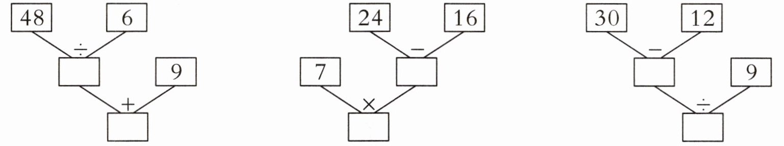 8 17 48÷6+9=17;8 56 7×(24-16)=56;18 2 (30-12)÷9=2