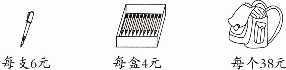 (2)军军有50元,买了一个书包,剩下的钱可以买几支钢笔?