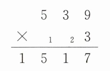 2. 小兰计算$539×3$的竖式如下图,请你对她的计算过程进行评价。(符合的打“√”,不符合的打“×”)